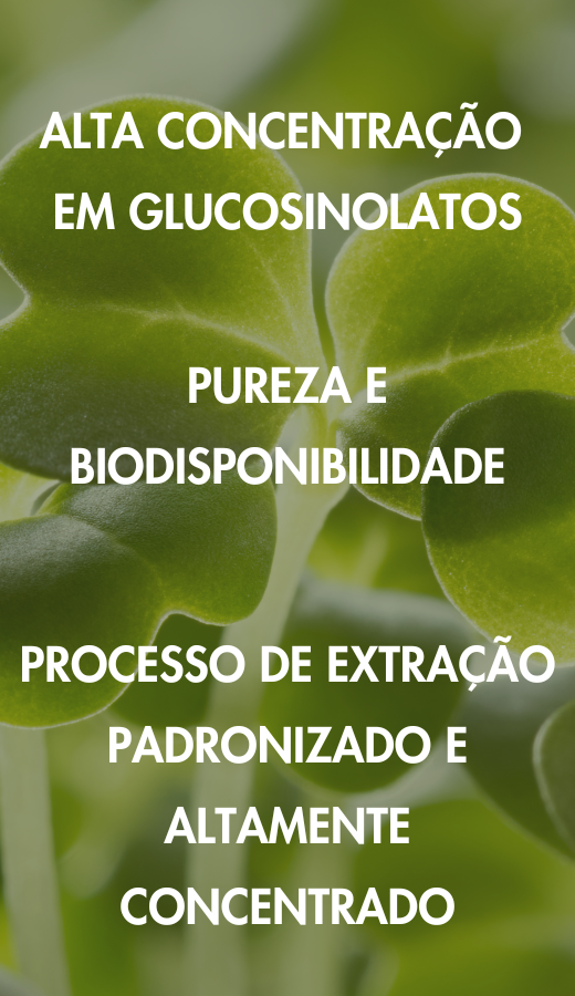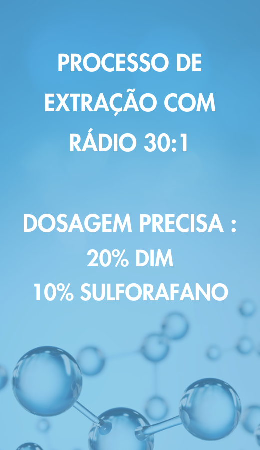 O extrato de brotos de brócolis usado em nossas formulações é obtido por meio de um processo de extração padronizado e altamente concentrado, projetado para garantir a pureza e a riqueza em ativos bioativos. Este processo rigoroso permite isolar e preservar os compostos de interesse, incluindo os glucosinolatos, precursores do DIM e do sulforafano, mantendo sua integridade e biodisponibilidade.