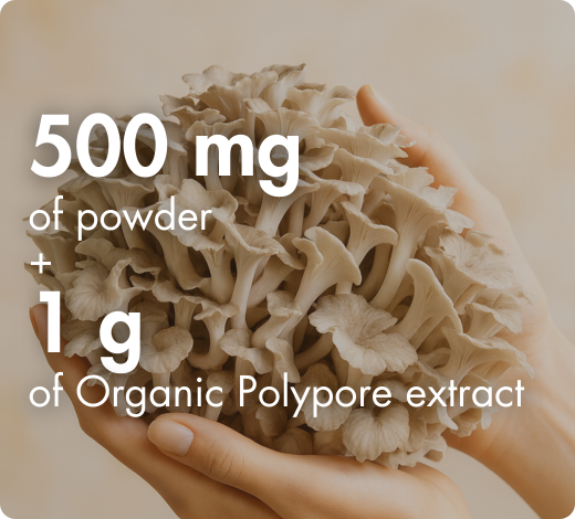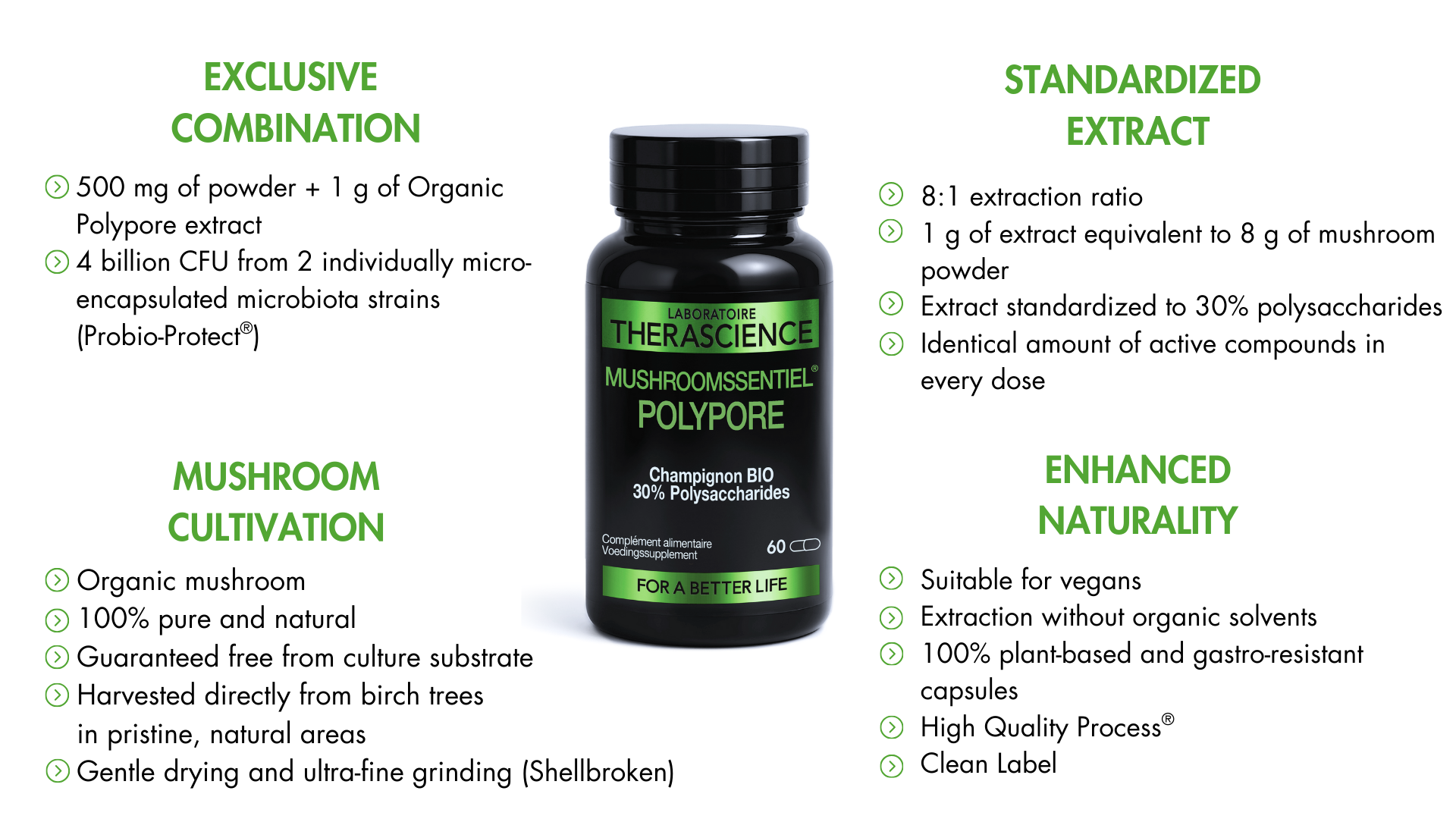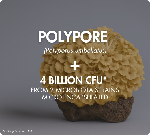 MUSHROOMSSENTIEL® Polypore fornece, portanto, todas as moléculas ativas do Poliporo, essenciais para sua eficácia.