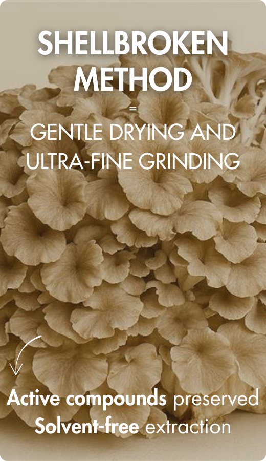 É por isso que nossos cogumelos são colhidos na maturidade e por que nossas fórmulas fornecem exclusivamente a parte ativa dos cogumelos, sem o substrato de cultivo.