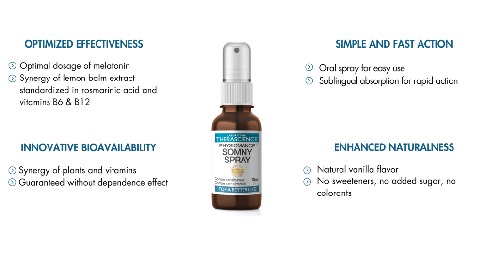 O extrato padronizado de melissa fornece ácido rosmarínico, e para duas pulverizações, isso corresponde a 28,8 mg de melissa equivalente a 57,6 mg de planta seca e 1,7 mg de ácido rosmarínico por dose diária. Ao contrário dos extratos de melissa não padronizados, a melissa padronizada garante potência superior e confiabilidade dos efeitos, particularmente para relaxamento, redução temporária do estresse e melhora da qualidade do sono.